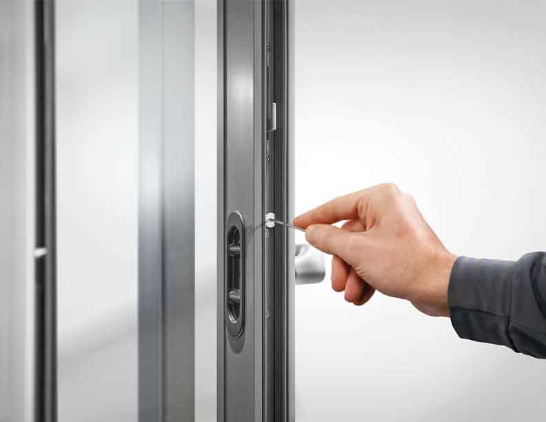 There is a choice of a compact espagnolette with 1-point locking, a single-action espagnolette with 1-point to 4-point locking, and a reverse-action espagnolette with 2-point to 4-point locking. A 5-point lock is possible when an extension is used. There is also the option to add a lock casing and, from a sash height of 1200 mm and above, one or more centring aids upon request. The position and number of centring aids can be freely chosen. The advantage of this variety is that “Patio Inline | SR” makes it possible to flexibly produce sliding elements to meet customers’ security needs and in many formats.