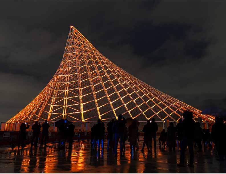 The choreography of light begins at sunset, with warm shades gradually shifting to cooler tones—from lunar white to sky blue to deep navy—fading into a luminous echo that seems to dissolve into the night sky. The result is a constantly evolving landscape that restores depth, rhythm, and life to one of the city’s most iconic structures. A poetic, technologically advanced work of art, entirely powered by renewable energy, merging sustainability, innovation, and beauty into a gesture of urban rebirth. The sails once again speak to the city, guided by a light that is not only visible—but profoundly evocative.